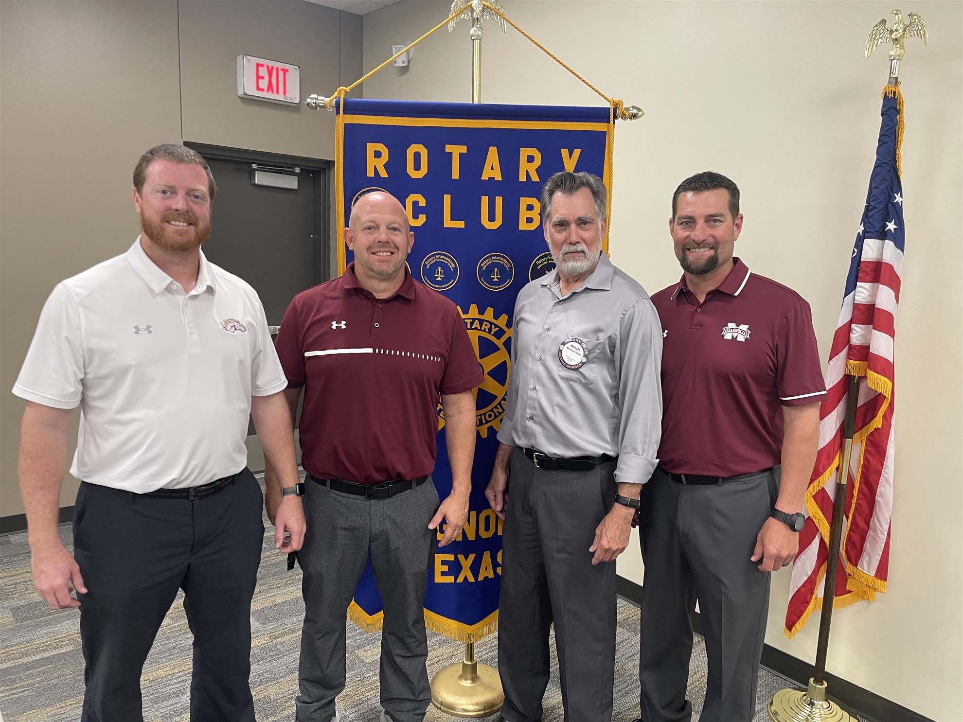 Coach Ben McGehee [West], JD Berma [AD], Michael Fields [Club President] & Craig Martin [Magnolia]Chris Whittaker, Magnolia's new City Manager, introduced himself to the club.